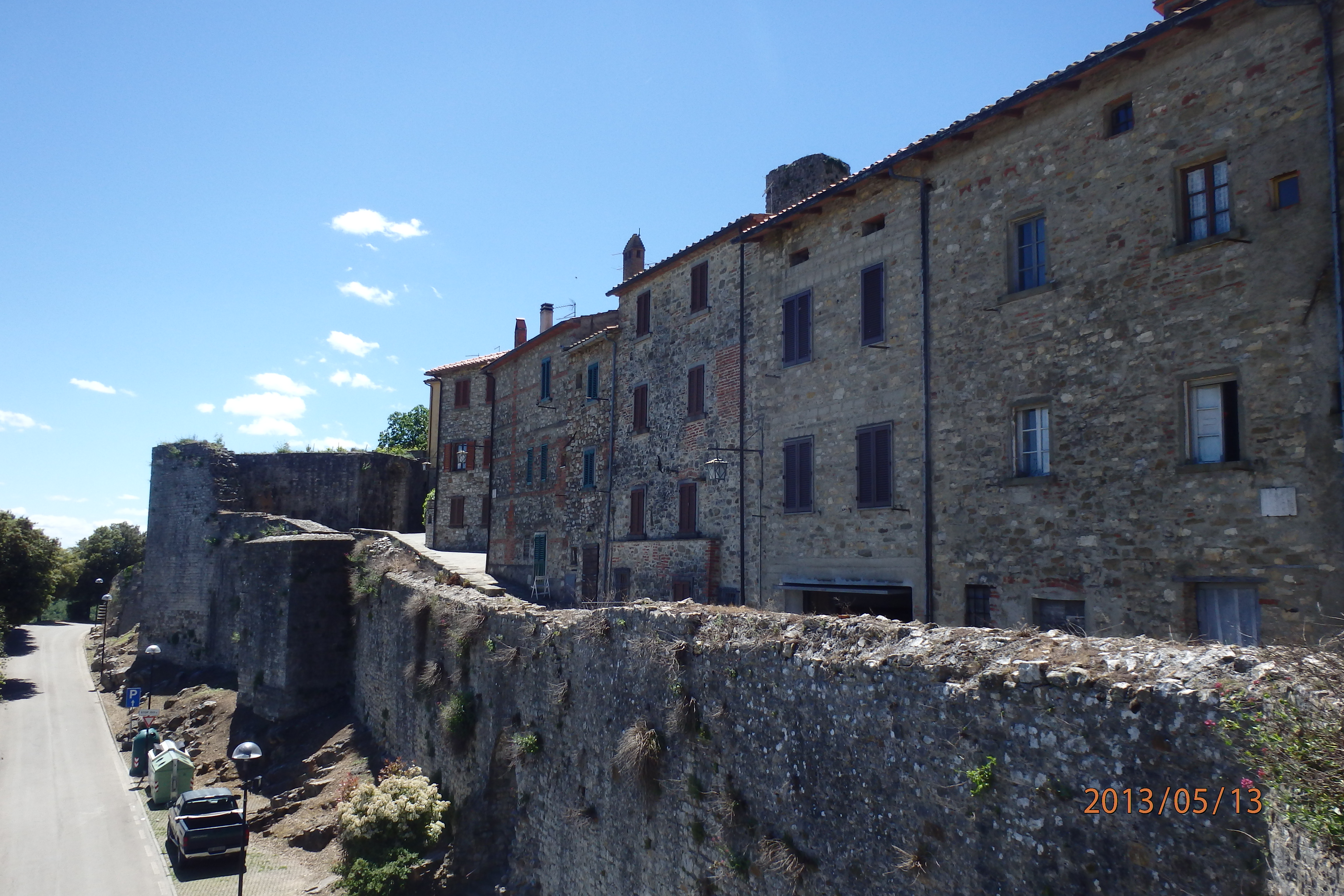 Today was a day of exploration. I think I found the village of Civitella to be the most interesting of all of the places we visited today. This place has a stronghold fortress that was first built in the year 1182. The village had outside walls and inner walls. Moving forward in history there is a World War 2 memorial commemorating 176 villagers who were taken into the town square outside the church in 5’s and executed at the direction of Nazi commander Hermann Goring. This was very sobering indeed and reminded us of how blessed we are. Here’s a picture of the remains of the Stronghold in Civitella first built in 1182 and then the outside wall of the stronghold and the valley that the stronghold overlooks.