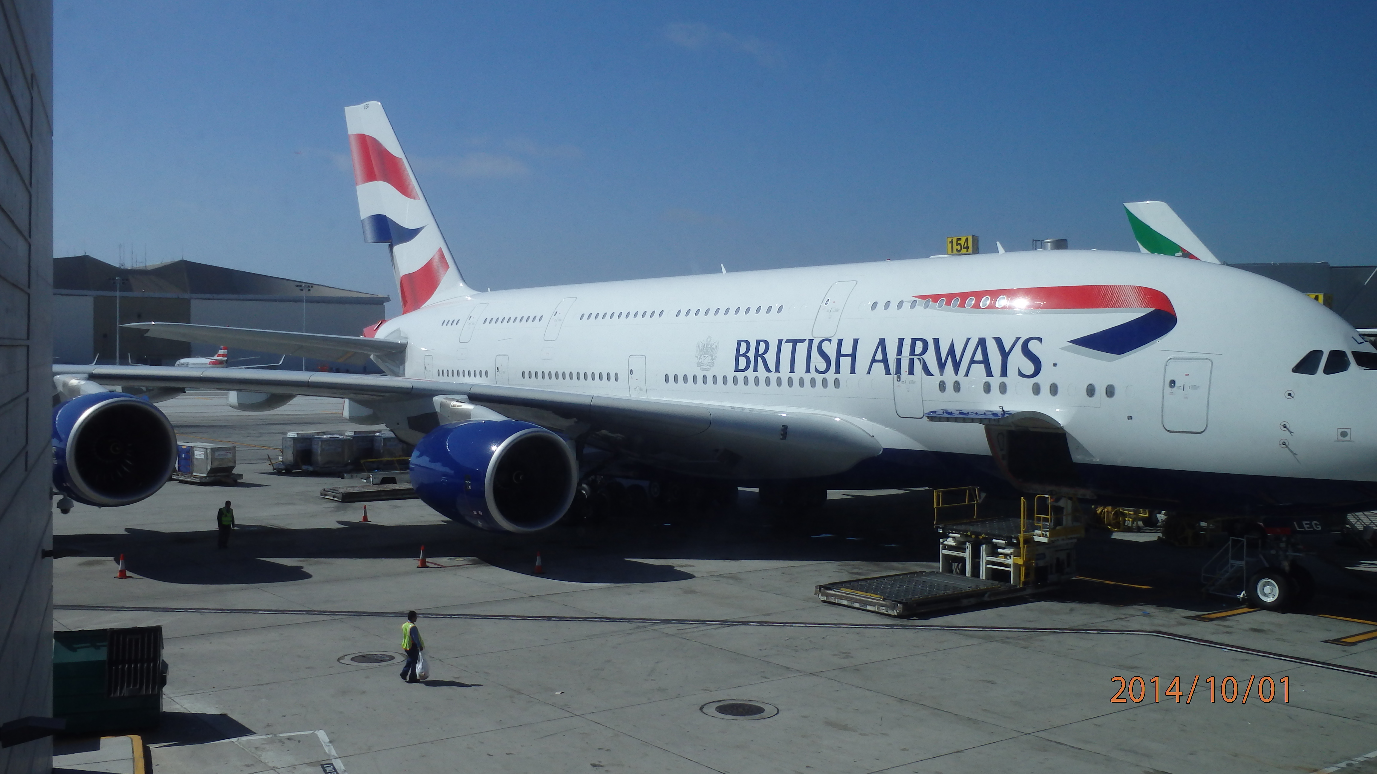I have an answer to the question posed in my last post. The answer is, “I do!” After hanging out for a few hours in the Alaska Airlines Board Room, we began the never easy trek to clear once again through LAX security. Once again, the security there didn’t disappoint (in the sense of being consistent with their difficulty). But hey, “Attitude is everything. Enjoy the journey” is our motto and although my fellow travelers gently had to remind me of our motto, I did come around. I think the other word that was used was Tranquilo! Clearing through security, we made our way to the end of the international terminal where our plane, an A380 big boy, awaited to transport us to London.